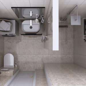 Kupatilo iz današnjeg 3D projekta, rađeno je sa pločicama koje predstavaljaju imitaciju drveta. Ove pločice se proizvode u Španiji, njihov naziv je Sauco Gris 24x95cm i nalaze se na podu…