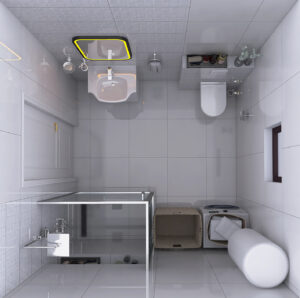 U ovom 3D prikazu renoviranog kupatila, naglasak je stavljen na čiste linije i sklad boja u toplim, zemljanim tonovima. Zidani deo za tuširanje odvojen je praktičnim zidom, bez klasične kabine,…
