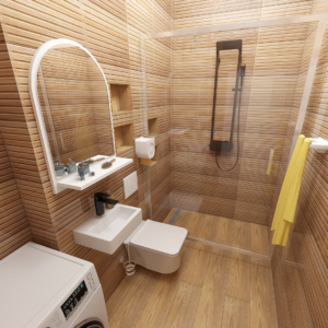 Projekat kupatila sa pločicama koje predstavljaju imitaciju drveta – Sanitarija