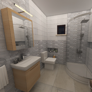 Moderno kupatilo sa nameštajem u boji drveta – 3D Projekat