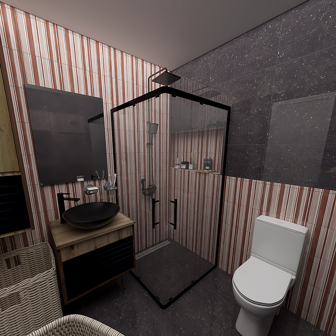 Projekat kupatila sa kombinacijom crne i crvene boje – Nameštaj Taylan
