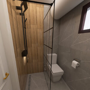 Uredjenje malog kupatila kombinacijom pločica u stilu mermer-drvo – pločice Ebano Miel