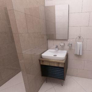 Moderno kupatilo – Pregradni zid ili kabina (zidana tuš kabina) – kupatilski nameštaj