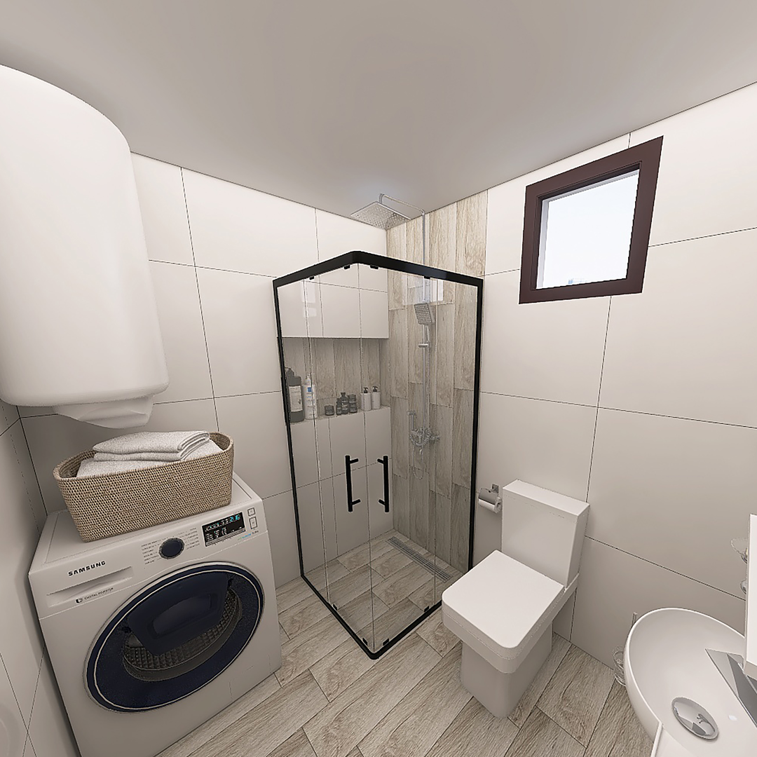 Kupatilo sa pločicama koje predstavaljaju imitaciju drveta – Kolpa Eco Quat
