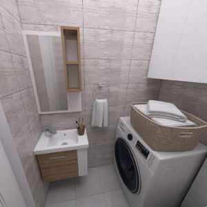Renoviranje kupatila malih dimenzija, kombinovanjem sivih pločica – Nameštaj Step DB