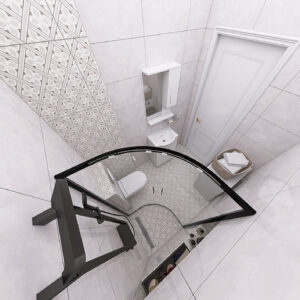 Kupatilo u sivim tonovima sa modernim kupatilskim nameštajem – usponski tuš BGQ crni