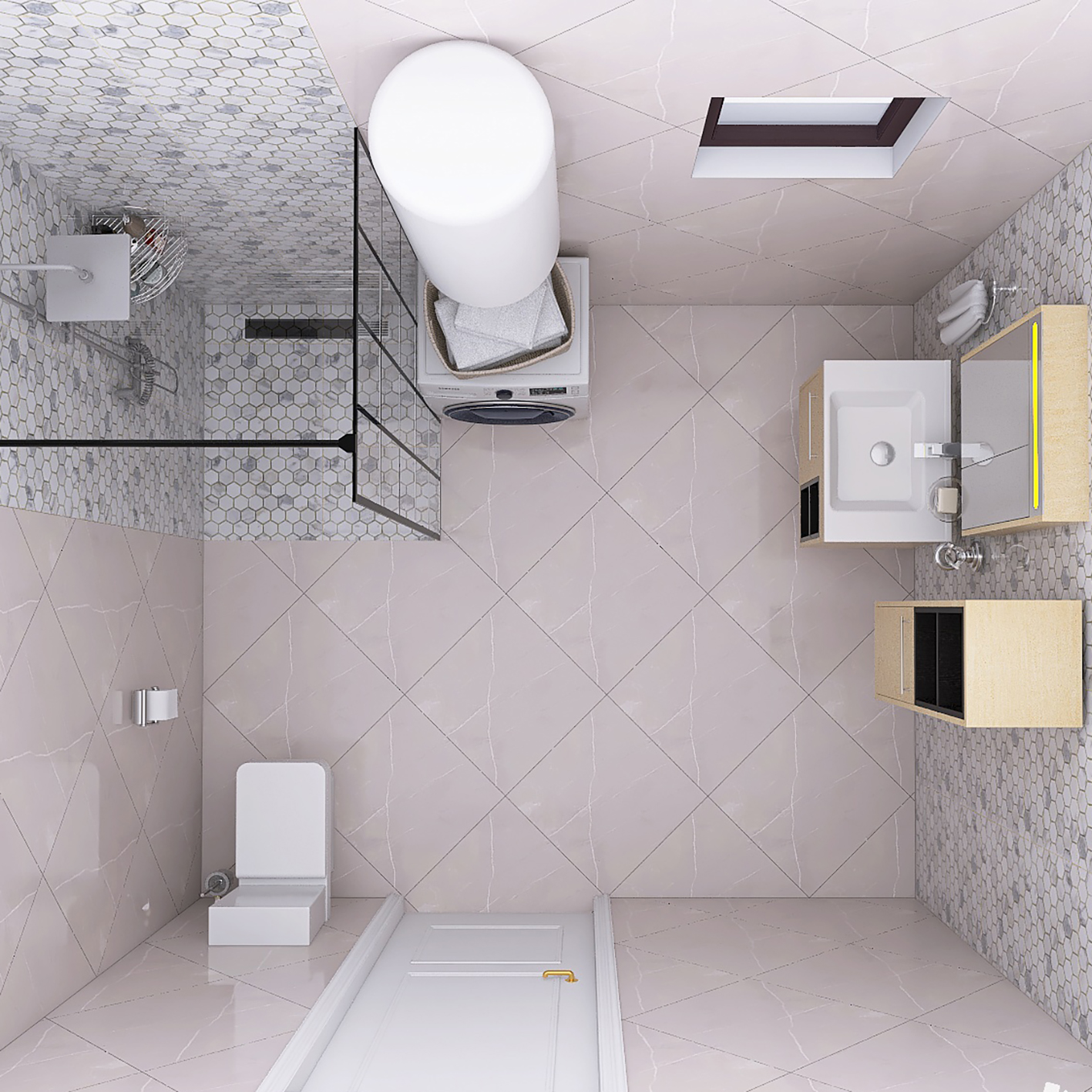 Moderno kupatilo sa tuš kabinom i ormarićem