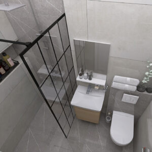 Renoviranje malog kupatila modernim sanitarijama i sivim pločicama – umivaonik duru