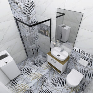 Kombinacija mermera i modernih crnih detalja – kupatilo koje odiše elegancijom i luksuzom