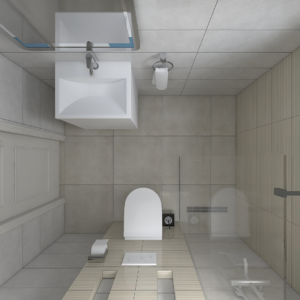 Sivo – belo kupatilo, 3D projekat kupatila u modernom stilu