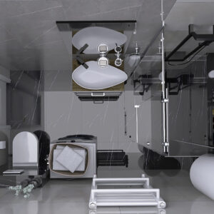 Uredjenje kupatila iz ovog 3D projekta, uradjeno je sa pločicama koje predstavaljaju imitaciju belog mermera. Ove pločice imaju naziv Duomo Blanco i njihova dimenzija je 60x120cm. Njih smo iskombinovali sa…