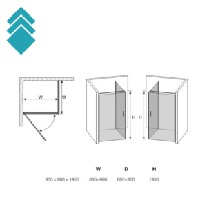 Stakleni tuš paravan – Tuš kabina, sa crnim aluminijumskim okvirom, 90x90cm, 195cm visine, sa providnim staklom debljine 8mm