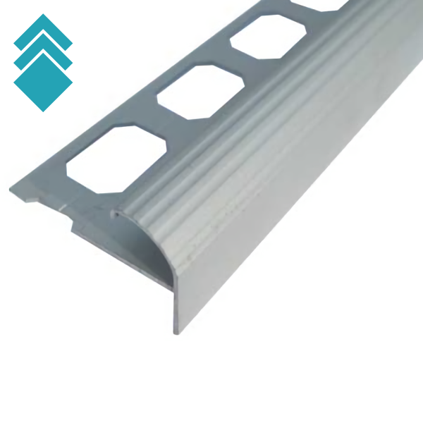 Aluminijumski stepenišni reljefni obli profil 360. Aluminijumski stepenišni profil 360 je namenjen za zaštitu ivice stepeništa. Stepenišni profil 360 se postavlja prilikom ugradnje keramičkih obloga na stepenište, a montaža se vrši uglavnom lepkovima za keramiku. Profil je namenjen za keramičke obloge od 8mm do 10mm debljine i pokriva čeoni i gazišni deo stepenika, gazišni deo profila je reljefna površina. Završna obrada stepenišnog 360 profila je proces hemijske eloksaže.