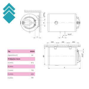 Navoj dovodne/odvodne cevi: 1/2″Max. radni pritisak: 6 bara