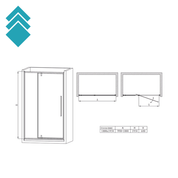 Paravan se sastoji iz: Jednog fiksnog stakla i jednih zglobnih vrata