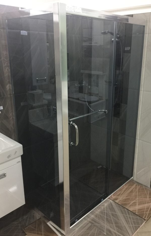 Diplon tuš paravan sa zatamnjenim staklom i sa hromiranim aluminijumskim profilima.