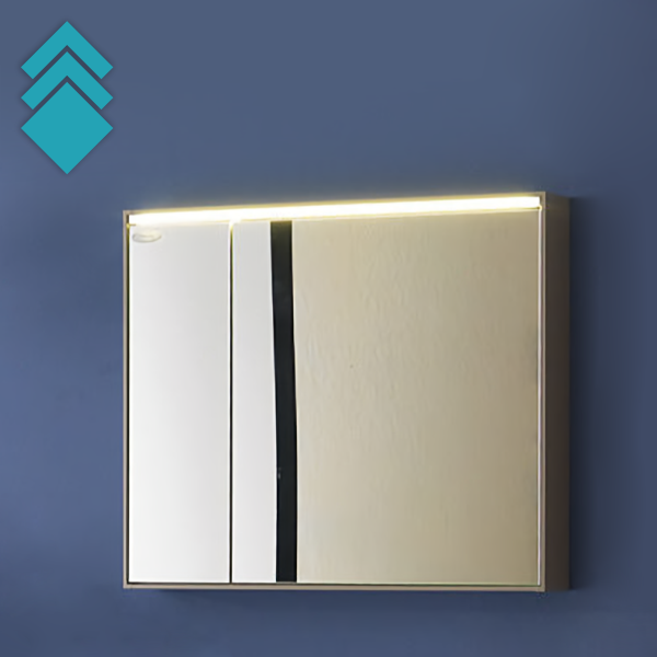 Nameštaj od lakiranih MDF ploča. Vratanca sa mekim zatvaranjem i ručicama koje se utapaju u dizajn na prednjem delu ogledal-ormarića.