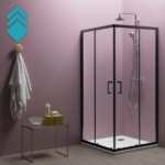 Tuš kabina s kaljenim prozirnim staklom od 5 mm i crnim profilom.