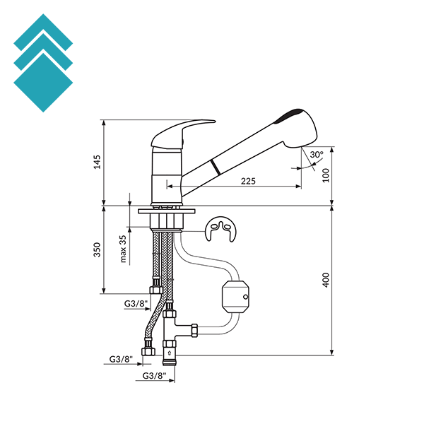 Opis: Baterija za sudoperu/protocni bojler sa izvlacnim tusem