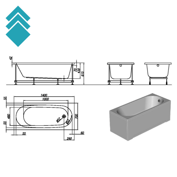 Dimenzije kade: 140x70cm