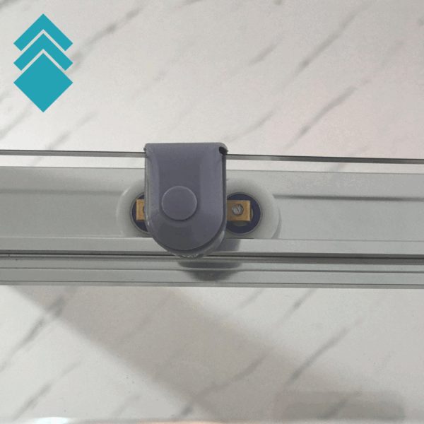 Aluminijumski profili omogućavaju podešavanje do 15 mm, dok dvostruki točkići sa tihim klizanjem obezbeđuju lako otvaranje i zatvaranje vrata. ABS hromirana ručica daje dodatnu notu elegancije, a PVC magnetna lajsna za zatvaranje vrata i vodonepropusna traka garantuju pouzdanu zaštitu od curenja vode.