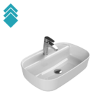 Gornja lakirana medijapan ploča otporna na habanje, sa keramičkim umivaonikom bele boje. Prednja i bočna stranica, lakiranao, mat.