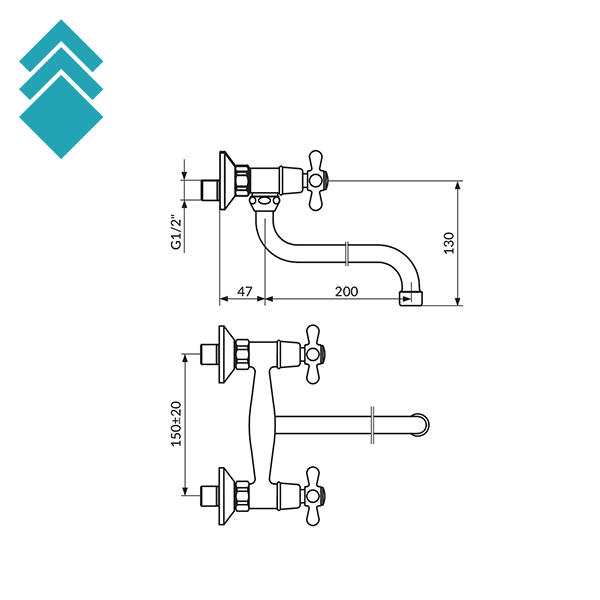 Opis: baterija za sudoperu/lavabo izliv 200mm-s