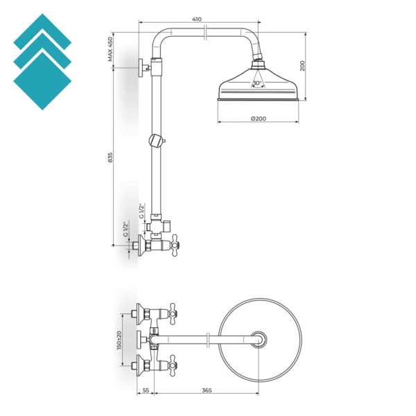 Konzola tuša L. 400mm – PTRKUZ5
