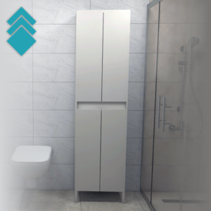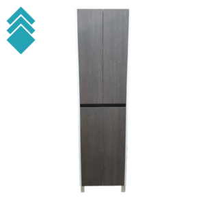 Nameštaj izrađen od oplemenjene iverne ploče obložen PVC folijom, sa ručicama koje se utapaju u izgled prednje strane ormarića.