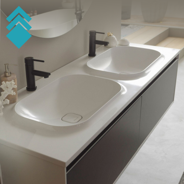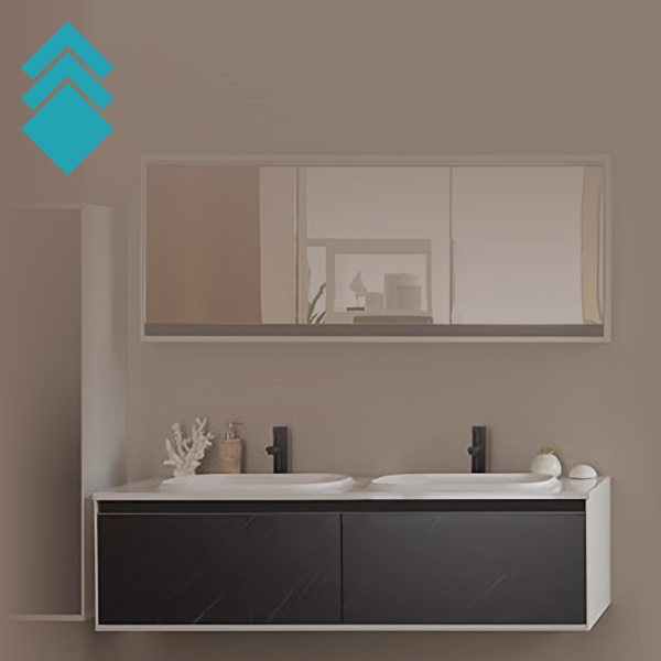 Kratak opis: Ormaric za kupatilo sa duplim umivaonikom od livenog mermera u dezenu crnog kamena