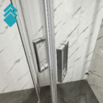 Aluminijumski profili omogućavaju podešavanje do 15 mm, dok dvostruki točkići sa tihim klizanjem obezbeđuju lako otvaranje i zatvaranje vrata. ABS hromirana ručica daje dodatnu notu elegancije, a PVC magnetna lajsna za zatvaranje vrata i vodonepropusna traka garantuju pouzdanu zaštitu od curenja vode.
