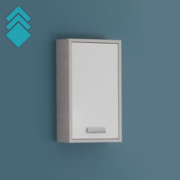 Nameštaj od oplemenjene iverne ploče. Hromirane ručice.