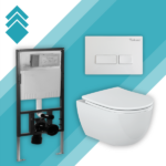 Ovaj komplet „Set Bella 4u1“ sadrži: Konzolnu šolju + WC dasku + ugradni vodokotlić Nil + tipku