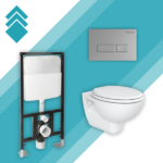 Ovaj komplet „Set Lila 4u1“ sadrži: Konzolnu šolju + WC dasku + ugradni vodokotlić Ova + tipku