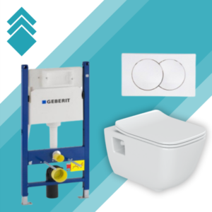 Ovaj komplet sadrži: Konzolnu šolju + WC dasku + ugradni vodokotlić GEBERIT + tipku
