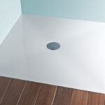 Tuš kada od sanitarnog livenog akrila, sa plitkim dnom, za ugradnju u nivou poda, visokoprotočni sifon Ø 90, noseća konstrukcija, H =15 mm.