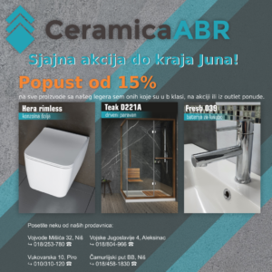 Posetite naše salone, na kompletan asortiman 15% popusta u svim našim maloprodajnim objektima! Na našem sajtu, svi proizvodi će biti sniženi 10%, osim slavina, koje će biti snižene 15% do…