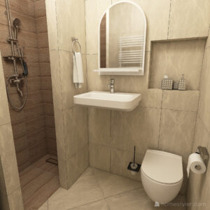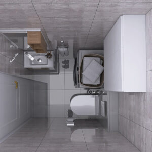 Renoviranje kupatila malih dimenzija, kombinovanjem sivih pločica