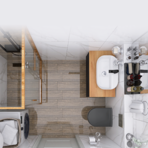Za pločice kod ovog projekta kupatila, izabrali smo mermer i imitaciju drveta, po želji klijenta. Drvo smo predvideli na jednom zidu u prostoru za tuširanje, iza lavaboa i ogledala, kao…
