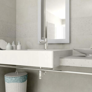 Kod ovog kupatila opredelili smo se za pločice renomiranih španski brendova STN i Balkania. Za oblaganje podova, odabrali smo Bonn Blanco pločice u dimenziji 60,8x 60,8 cm, ove iste pločice…