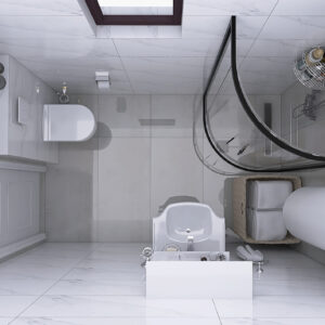 Kupatilo iz ovog 3D projekta rađeno je u modernom stilu. Zidne Pločice koje smo koristili u njemu imaju visoki sjaj i teksturu sa 3D efektom. Veći deo zidova obložen je…