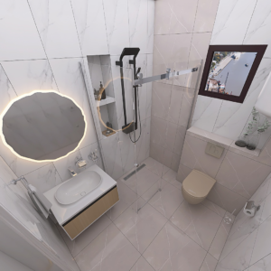 Po želji našeg klijenta, za ovaj 3D projekat odabrane su španske pločice u sivim tonovima u kombinaciji sa modernim kupatilskim nameštajem i modernom sanitarijom visokog kvaliteta, po jako povoljnim cenama.…