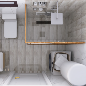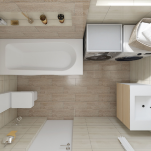 U ovom 3D projektu, od pločica koristili smo imitaciju drveta u svetlijoj boji i pločicu bež boje. Power Beige u dimenziji 60x20cm, i Acacia Haya u dimienziji 61,5×21,5cm su nazivi…